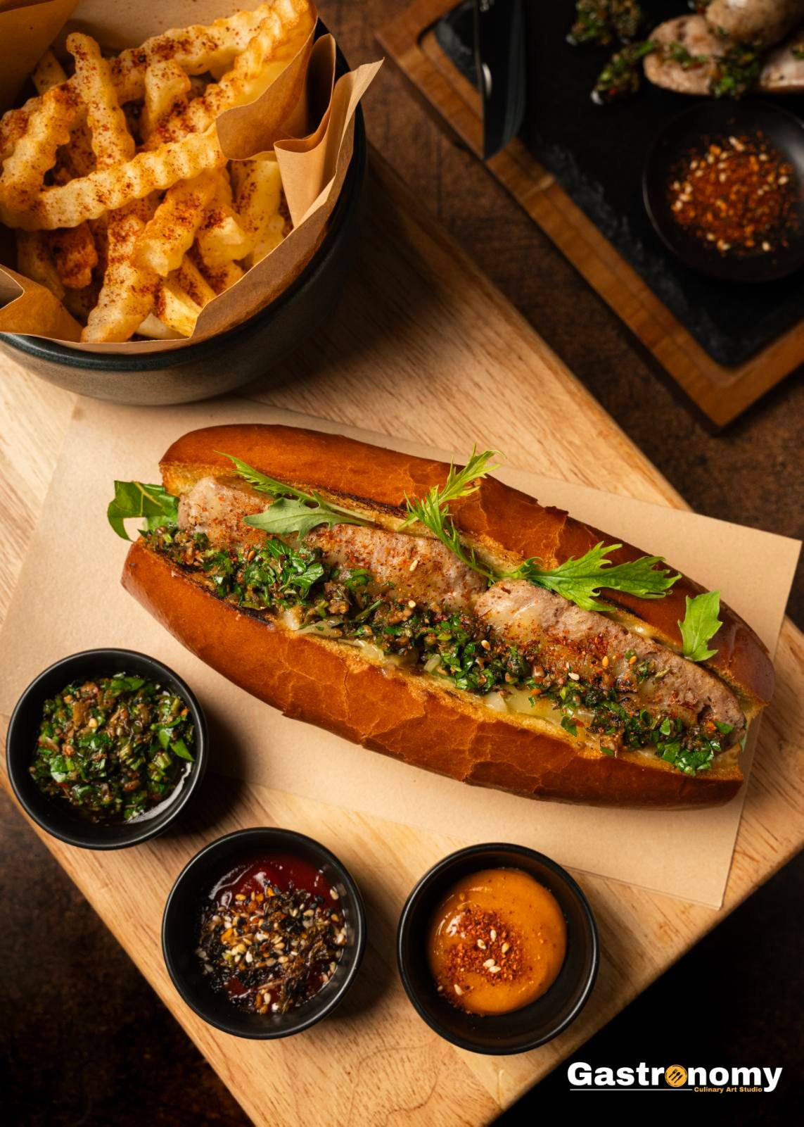 • A true Latin American street-food icon, Choripán is a beloved sandwich built around smoky, flame-grilled chorizo served in fresh bread. Born in Argentina’s traditional asados and shared at gatherings and football matches, it’s simple, bold,and full of character.Our version is served in soft, buttery brioche buns and layered with melted cheese for extra richness. Finished with vibrant chimichurri — a fresh herb sauce of parsley, garlic,olive oil, vinegar, and chili — adding brightness and a gentle kick. Juicy, comforting, and full of fire and soul.
