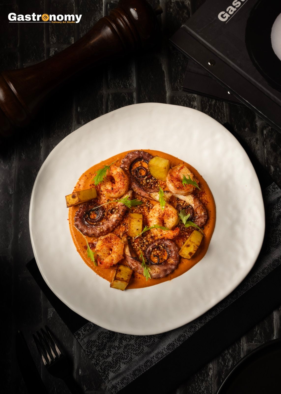 Tender char-grilled octopus and juicy prawns, kissed by open flame and served with rich romesco sauce made from roasted peppers, almonds, garlic, and olive oil.A Mediterranean-inspired balance of smokiness, sweetness, and nutty depth.