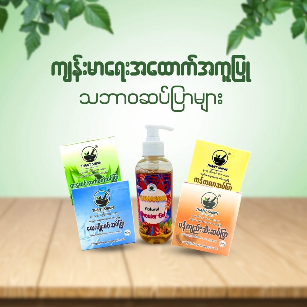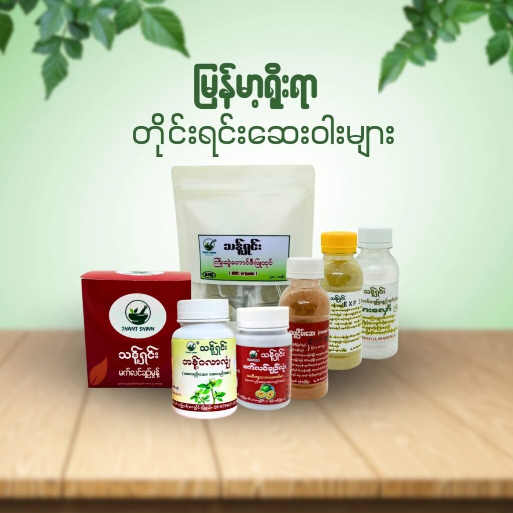 Thant Shinn အလှအပနှင့်ကျန်းမာရေးစခရပ်များ See All Menu ဦးရေပြားနှင့်ဆံသားကျန်းမာရေးပစ္စည်းများ See All Menu ကျန်းမာရေးအထောက်အကူပြုသဘာဝပစ္စည်းများ See All Menu မြန်မာ့ရိုးရာတိုင်းရင်းဆေးဝါးများ See All Menu ကျန်းမာရေးအထောက်အကူပြု သဘာဝဆပ်ပြာများ See All Menu မိသားစုကျန်းမာရေးလက်စွဲစာအုပ်များ See All Menu